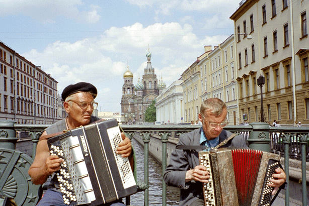 Der musikalische Empfang in St. Petersburg Straßenkünstler gibt's auch hier |